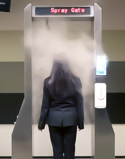 設置は簡単、入り口に置くだけ。機械に触れずに全身除菌。